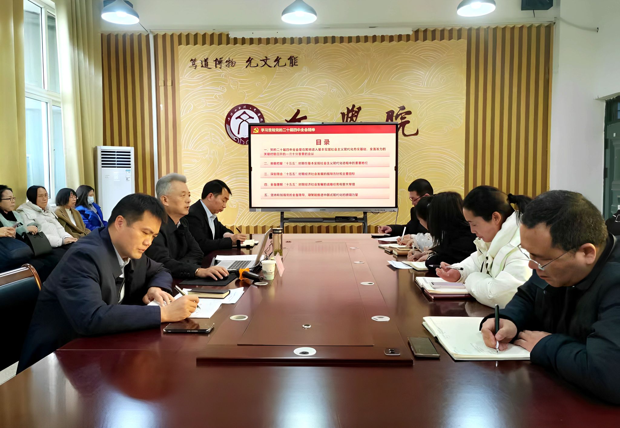 许建辉强调,学习全会精神要紧扣“学懂弄通做实”要求,努力在三个维度上发力:一是原原本本学原文。深学细研《中共中央关于制定国民经济和社会发展第十五个五年规划的建议》和习近平总书记所作的《关于<中共中央关于制定国民经济和社会发展第十五个五年规划的建议>的说明》,全面把握核心要义与实践要求;二是联系实际悟精髓。突出问题导向和实践导向,将理论学习与工作实际紧密结合,更加自觉用党的创新理论指导实践、推动工作、破解难题;三是融会贯通谋发展。要以全会精神为指引,联动学习《教育强国建设规划纲要(2024—2035年)》,找准切入点,抓实着力点,把握关键点,确保全会精神在学校落地落实、见行见效。